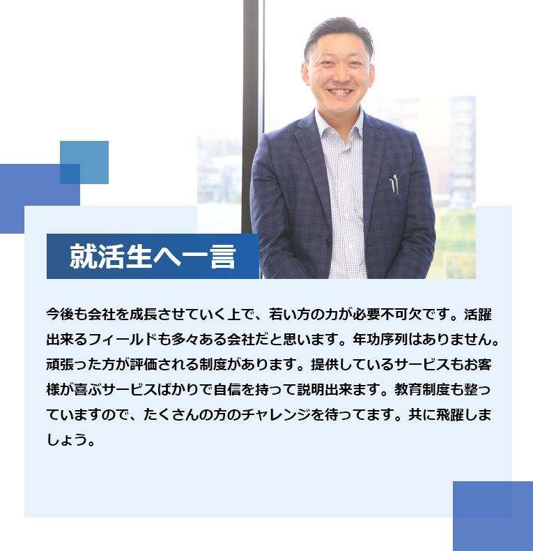 社長は私たちが知らない世の中の動き・情報をたくさん持っています。日頃仕事の枠の中で勤務している私たちにとっては非常に新鮮な情報です。定期的な社長研修等あれば仕事の枠を超えた情報を取得する事が出来、仕事の仕方や考え方が変わるきっかけになると感じます。