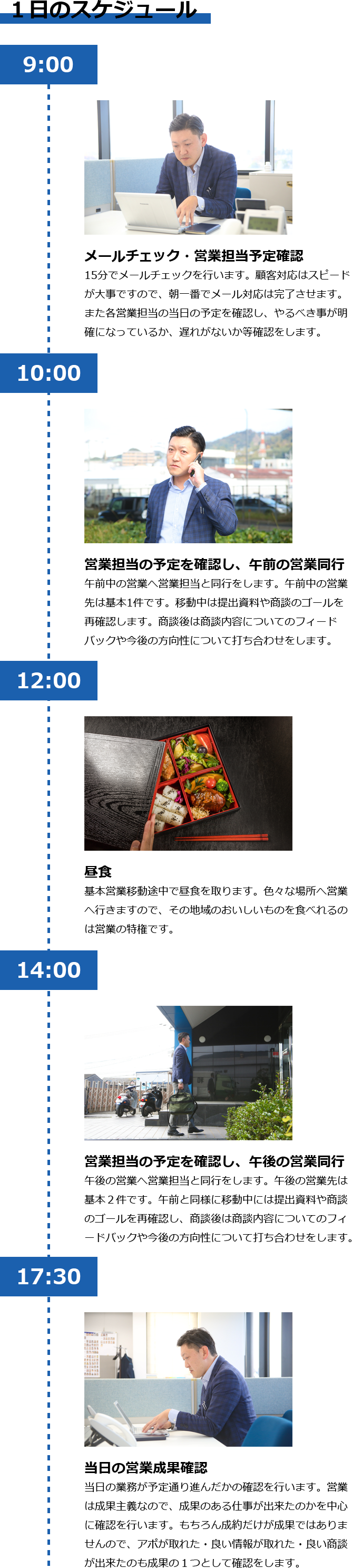 主に既存のお取引様とのミーティングです。内容はお取引様の抱えている課題のヒアリング及び解決提案となります。課題を明確にする必要がありますので、色々な方とミーティングを行うこともあります。各お取引様で抱えている課題も違いますので、課題を確認し、実態調査を行った上で、お取引様の課題を認識します。課題を解決する為に不足している部分をエイジスで補いますので、お取引様と協業し、課題を解決します。