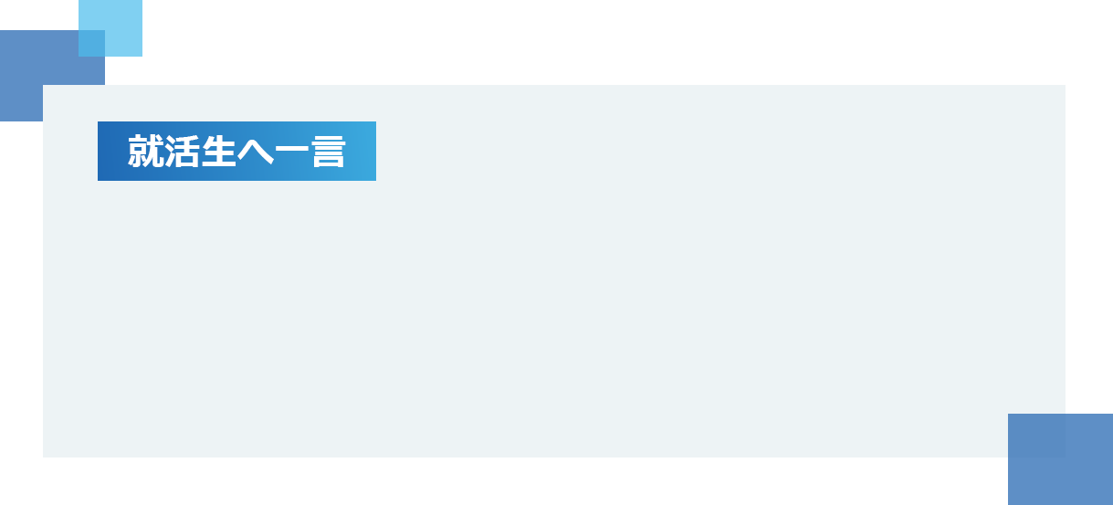 今現在社内では、より働きやすい職場になるために、人事総務部を中心に、ストレスチェックを行ったり、福利厚生、働き方改革のためのアンケートの実施をしております。その事により、最初から全ては厳しいかもしれませんが、少しずつ皆さんの意見が反映されています。ですので、これからは、今まで以上に、実際に働いている人の声が、職場環境改善のための意見として反映されていき、より働きやすい環境になっていくと確信しております。