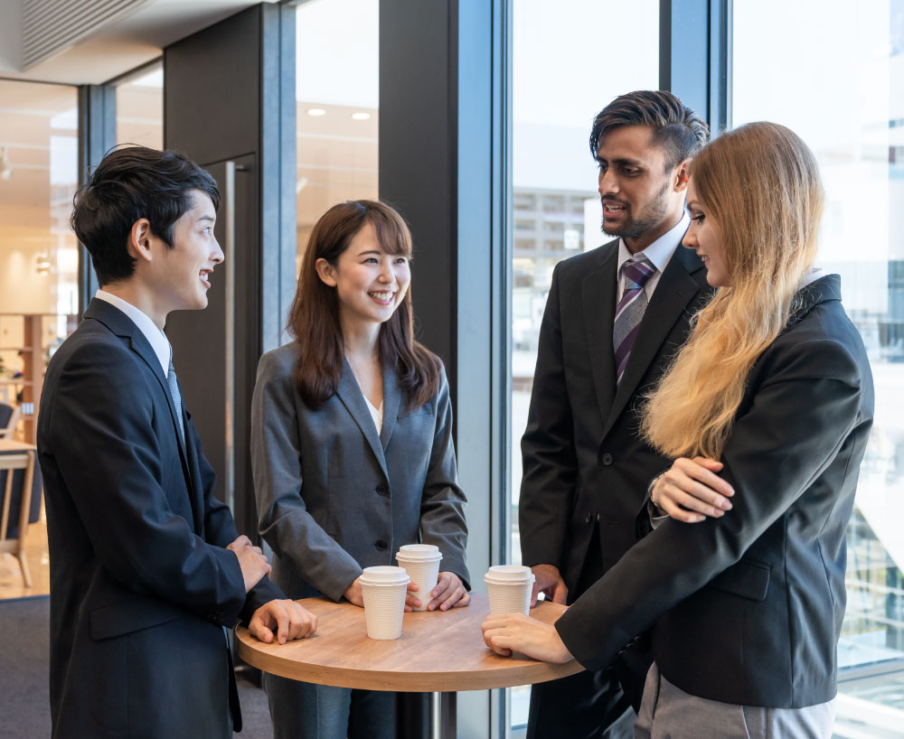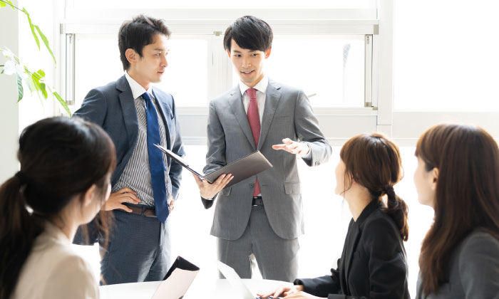事務所または店舗にてその日の業務について作戦会議を行います。