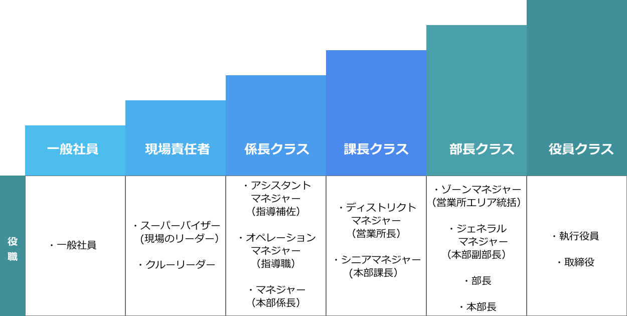 組織を統括する幹部クラス。各部署の管理監督・業績を担って頂きます。会社全体の利益と成長を目指し、経営幹部として会社経営を実践します。