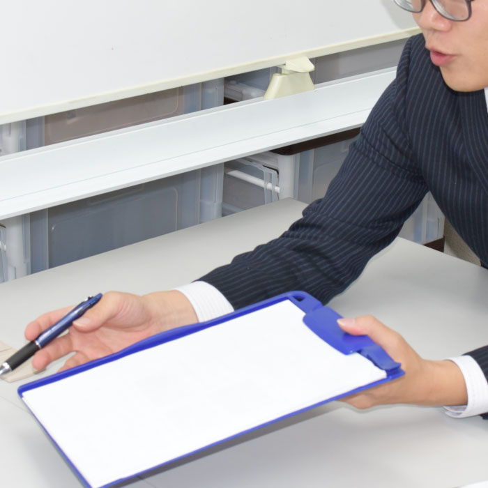 お客様とのアポイントを取り、日程の打ち合わせや作業の広さなどを事前にリサーチします。現場当日は作業進行の打ち合わせや、終了時に不明の確認などをお客様と一緒に行います。