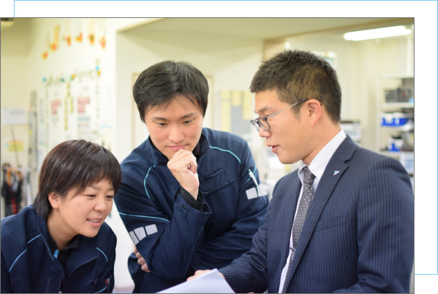 現場ではチームで協力し合って仕事を進めていくので良い雰囲気で業務を行うことが出来ていると思います。オンオフのはっきりした非常にメリハリがある会社です。品質の面では高いクオリティが求められますが品質管理、作業について定期的な講習があり、わからない事も親切に指導していただいています。会社全体としては、全社員会議やクラブ活動を通して、普段はあまり接する機会の少ない他部門の方ともコミュニケーションがとる事ができます。