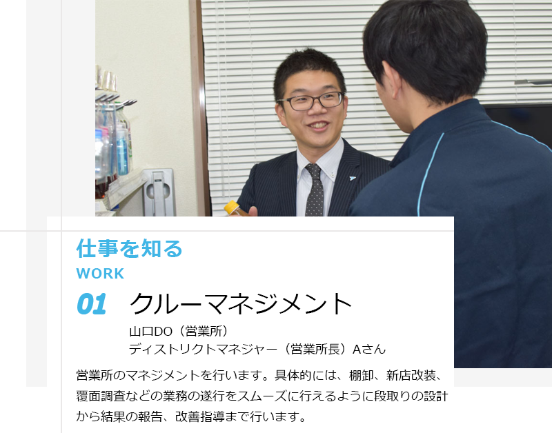 お客様とのアポイントを取り、日程の打ち合わせや作業の広さなどを事前にリサーチします。現場当日は作業進行の打ち合わせや、終了時に不明の確認などをお客様と一緒に行います。