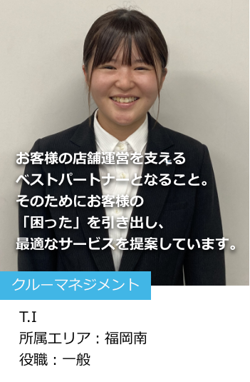 初めは専門用語や業務を覚えたりするのが大変でしたが、研修やカリキュラムがしっかりしていたので仕事を覚えることができました。マネジメントというと一から十まで人を管理するイメージでしたが、オーナーさんや店長から声をかけられたり、スタッフの方が頑張ってくれたりして楽しさややりがいを感じられました。当然責任も大きくプレッシャーはありますがとても充実しています。